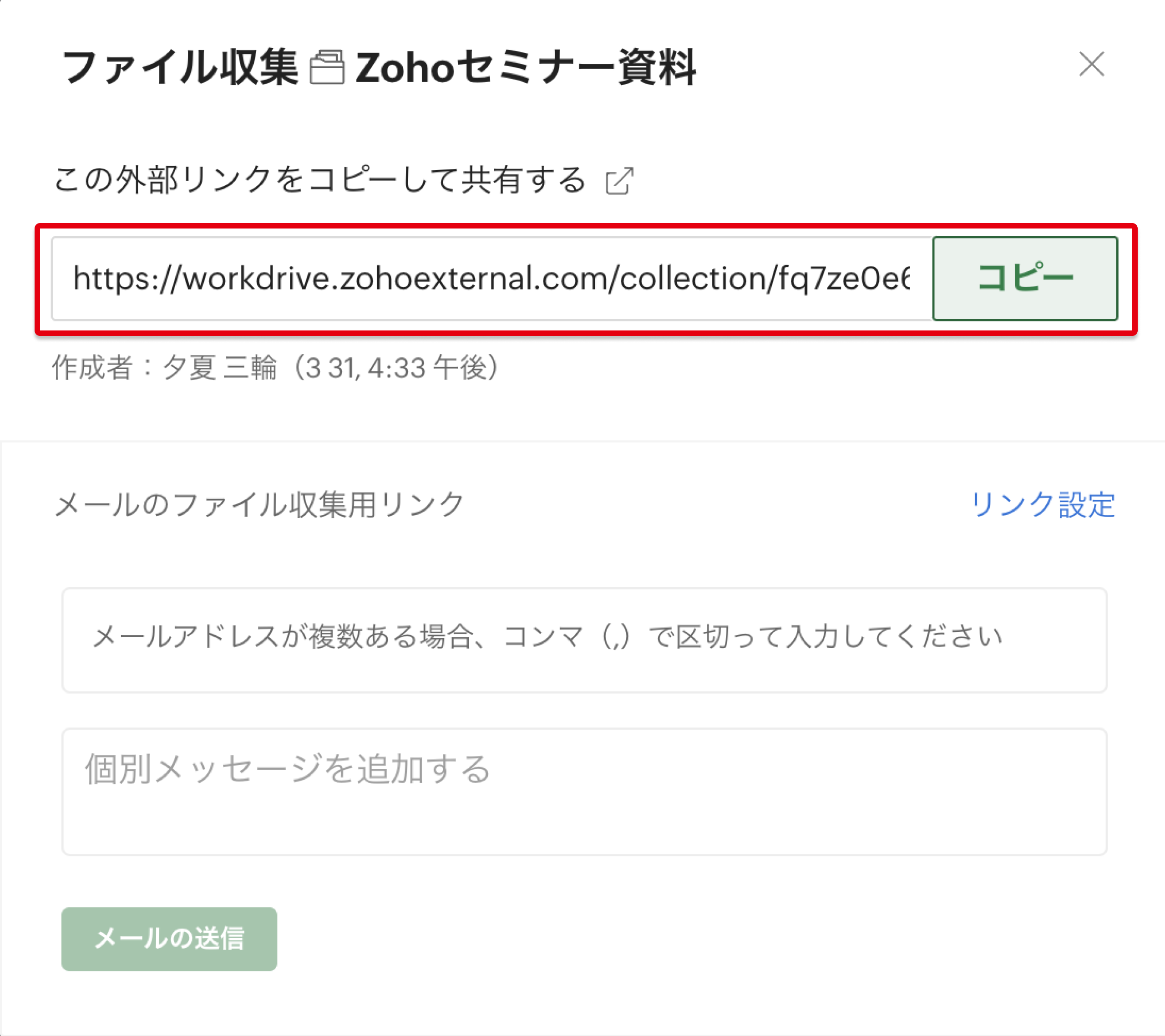 その場合には、ファイル収集用のURLを発行し、先方にURLを送信することで、大容量のファイルも安心して送ってもらえます。
